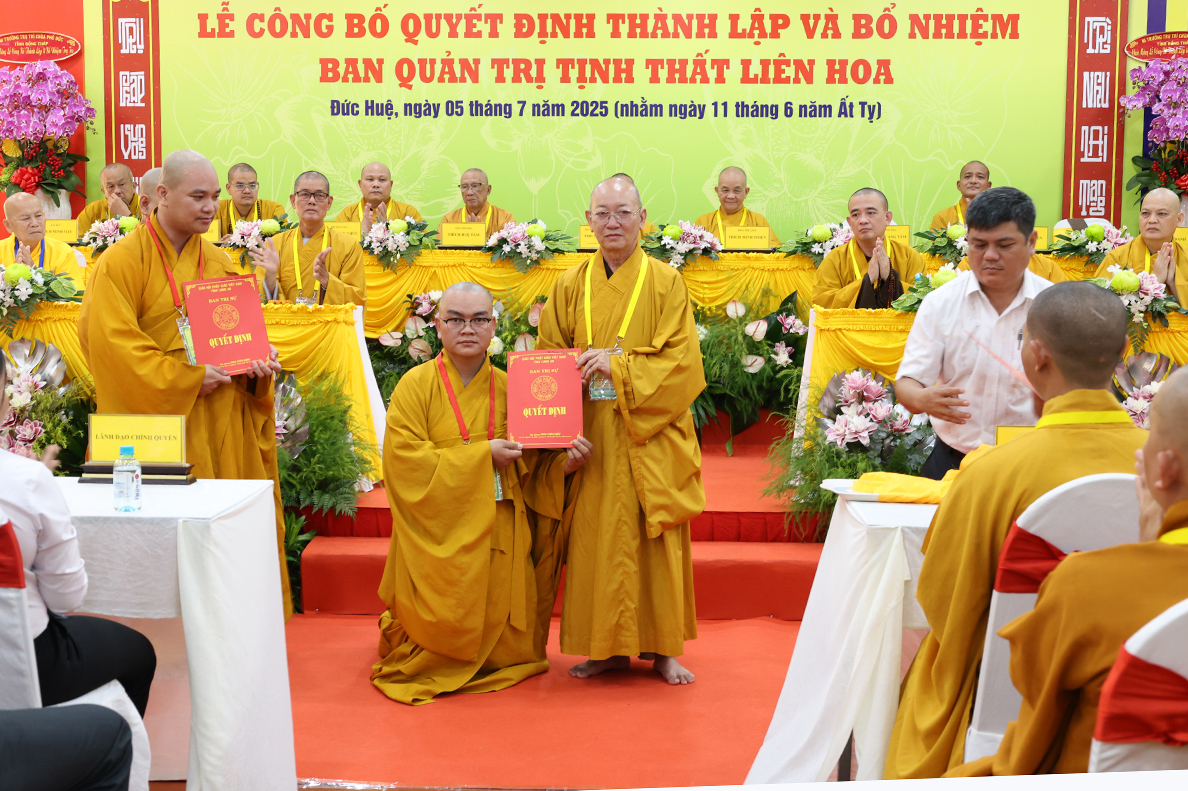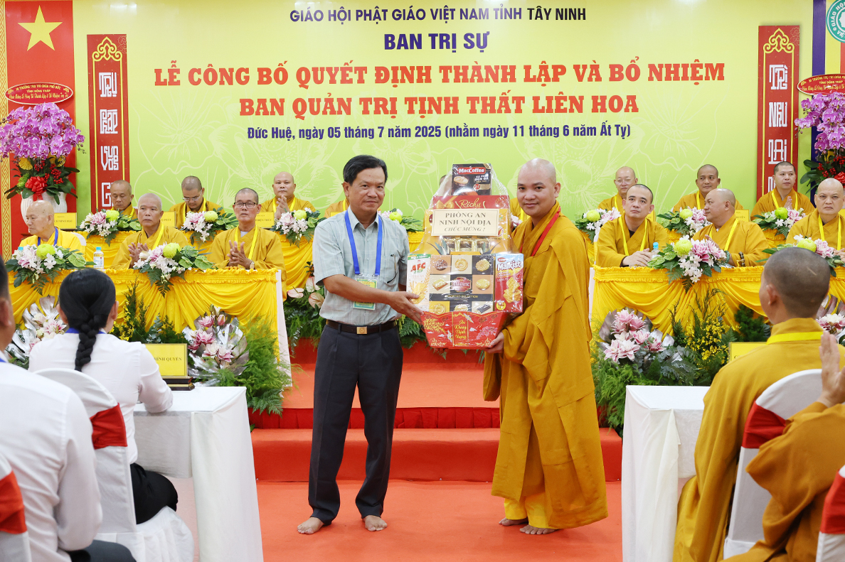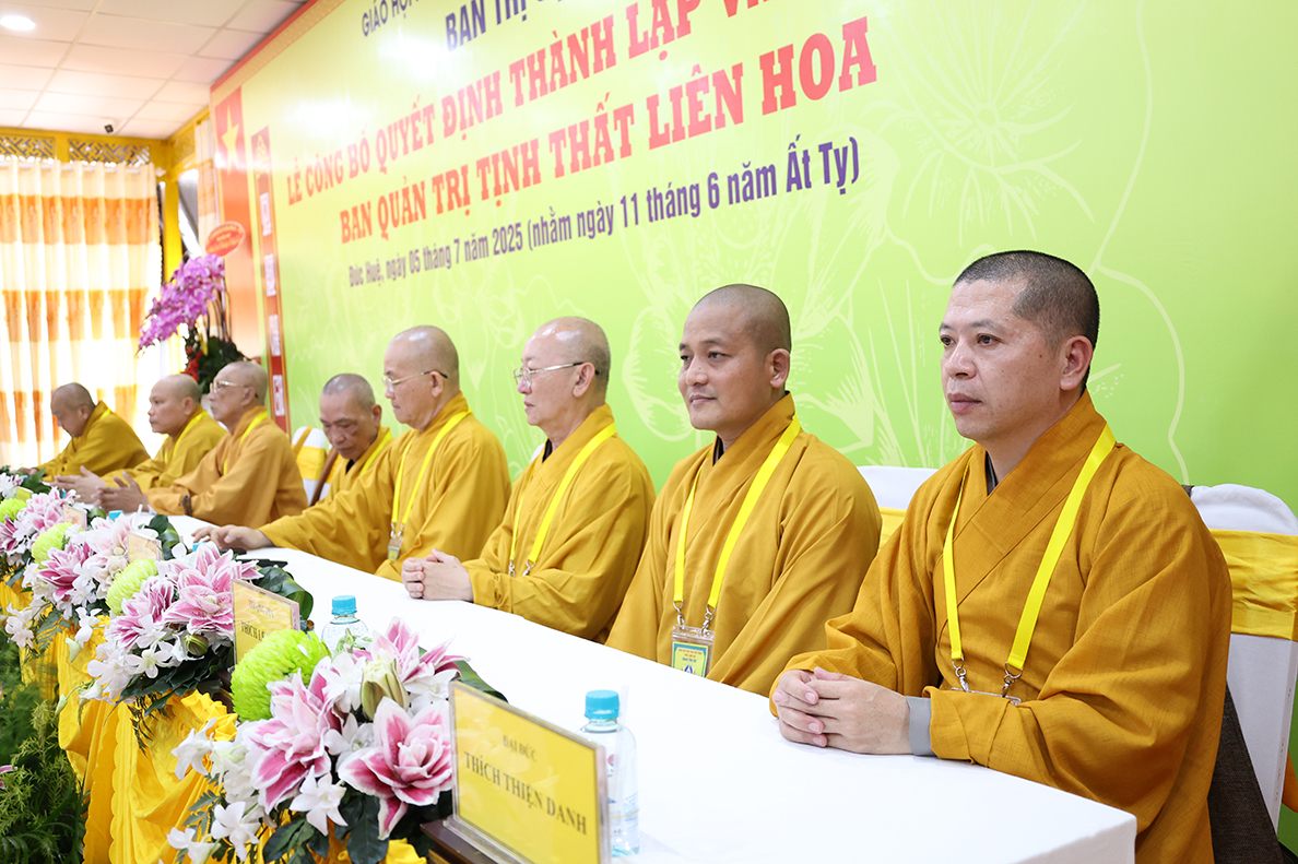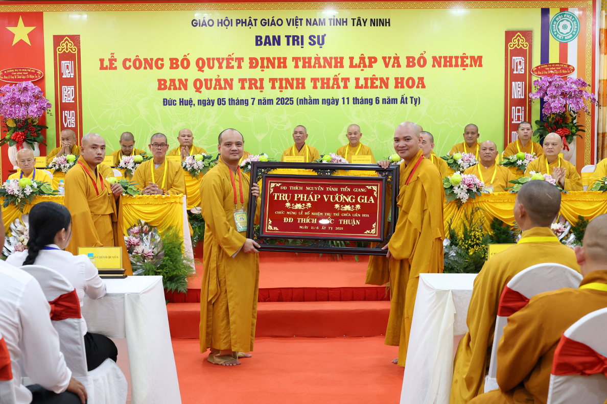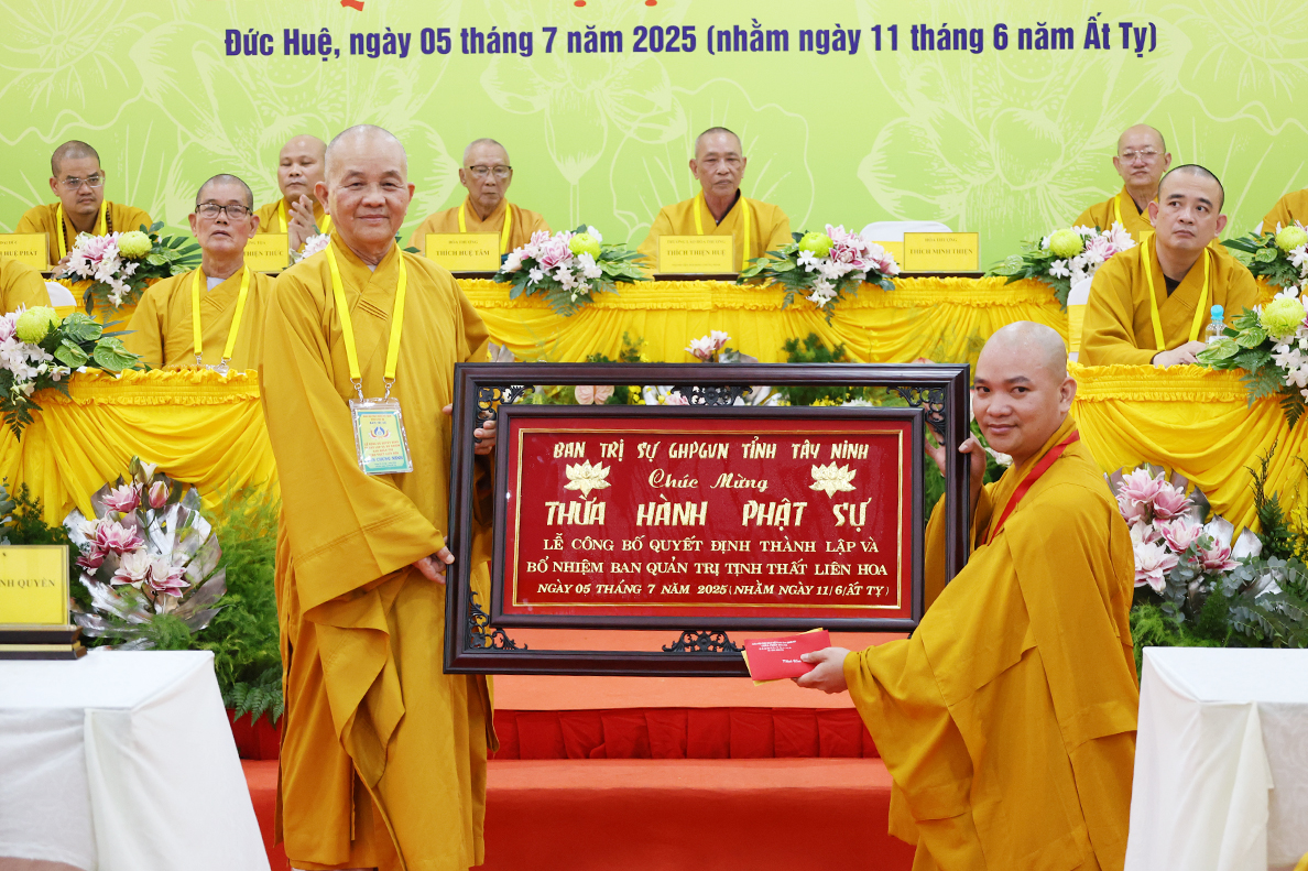 Sáng ngày 05 tháng 7 năm 2025 (nhằm ngày 11 tháng 6 năm Ất Tỵ), được sự cho phép của lãnh đạo chính quyền các cấp, BTS GHPGVN tỉnh Tây Ninh long trọng tổ chức Lễ Công Bố Quyết Định Thành Lập Và Bổ Nhiệm Ban Quản Trị Tịnh thất Liên Hoa tại xã Đức Huệ, tỉnh Tây Ninh.