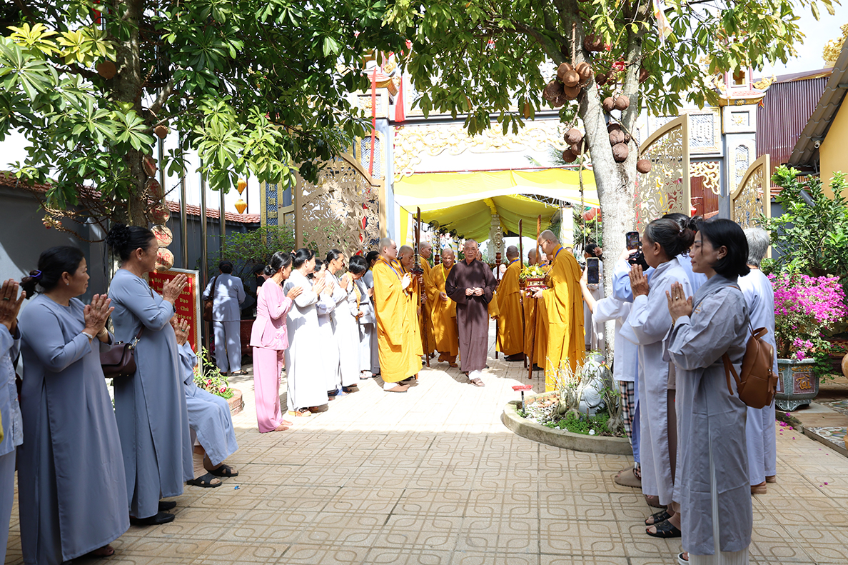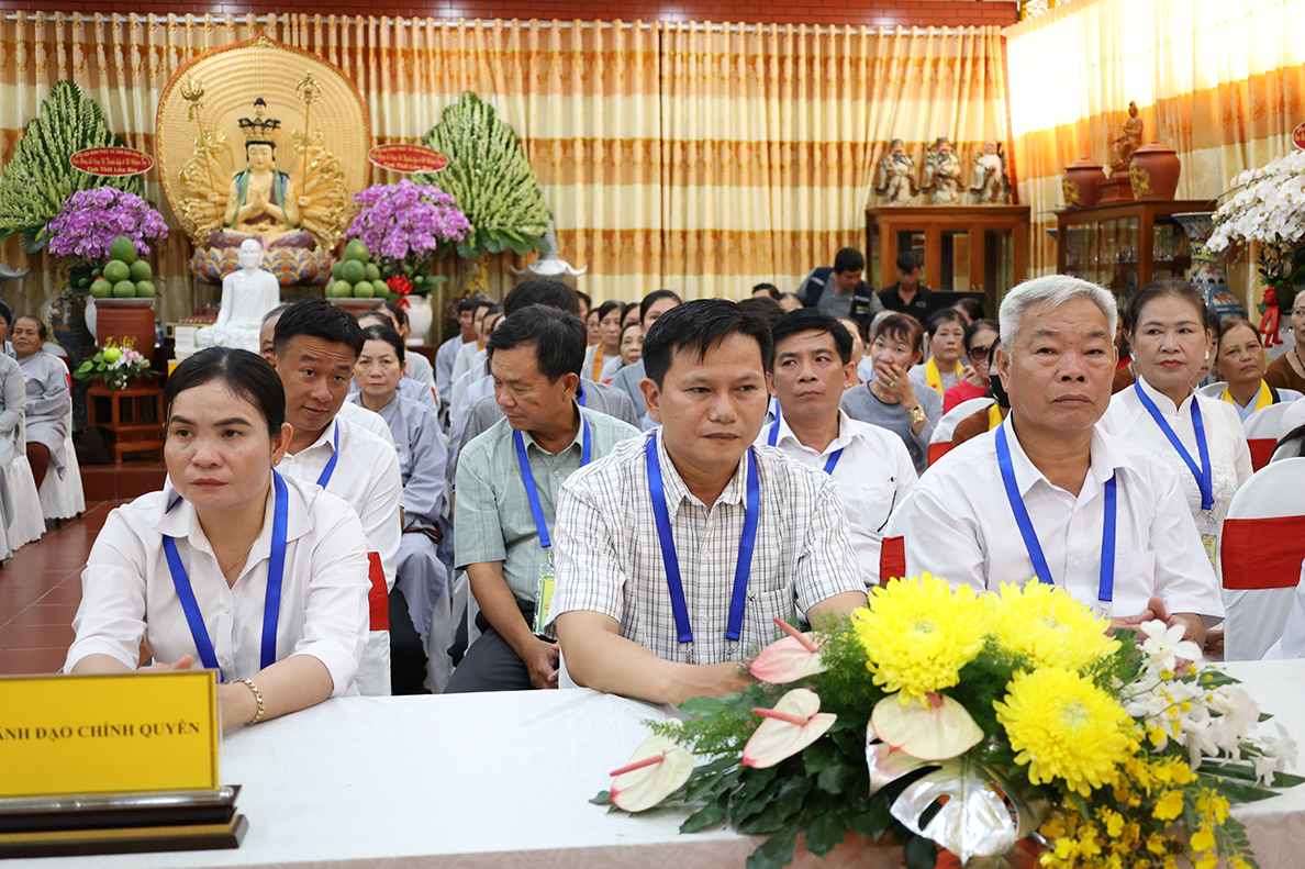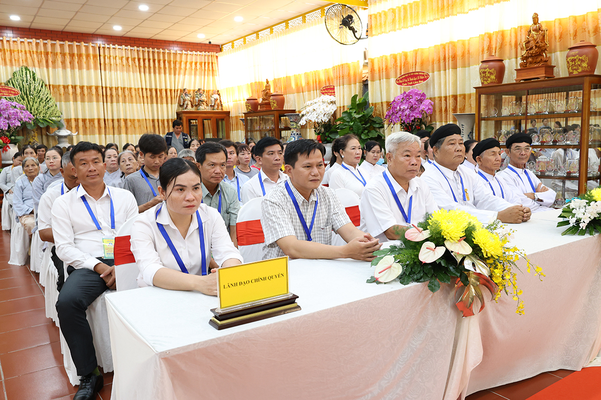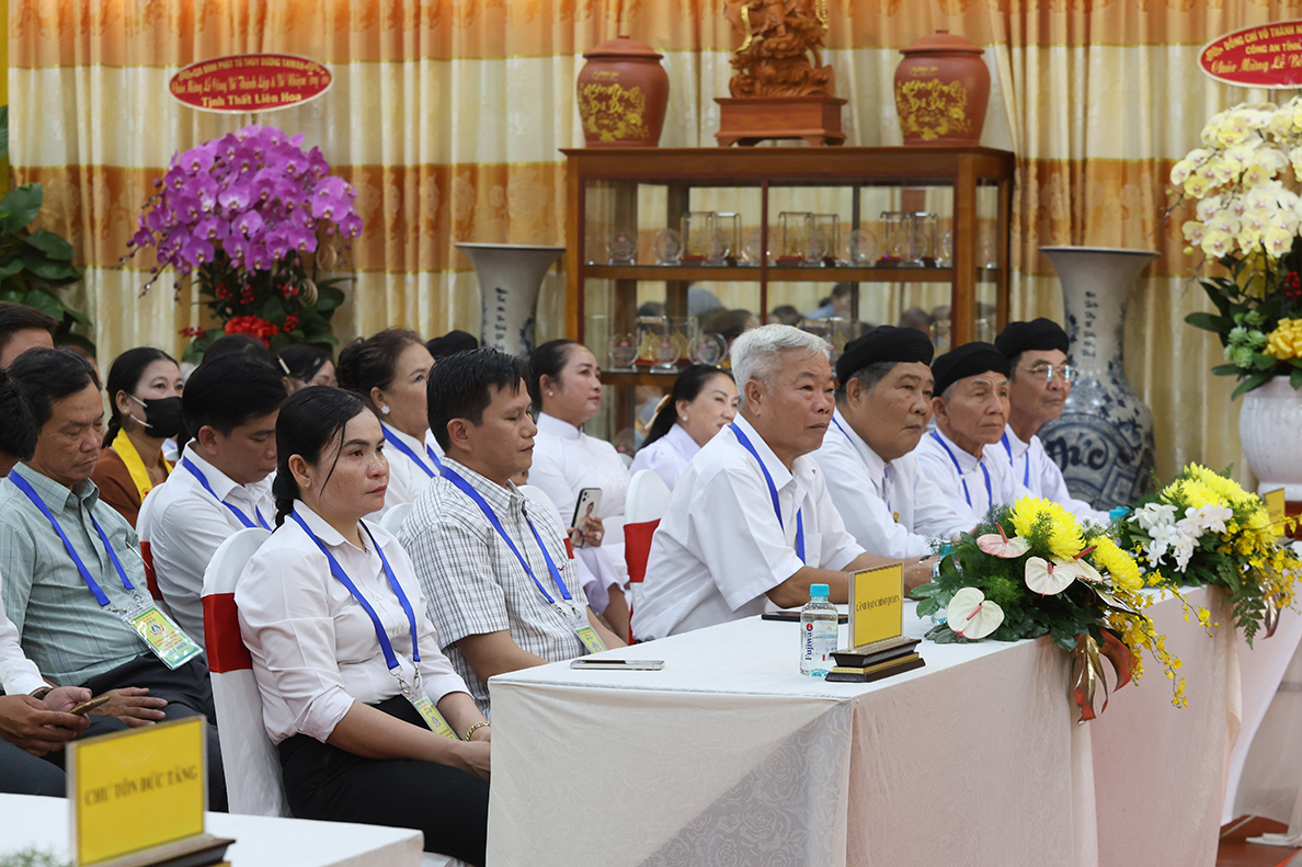 Về phía lãnh đạo chính quyền có: ông Nguyễn Văn Mưng – Phó Giám đốc Sở Dân tộc và Tôn giáo tỉnh Tây Ninh; ông Phạm Văn Hoàng – Đại diện Phòng An ninh nội địa Công An tỉnh Tây Ninh; ông Nguyễn Văn Cường – Uỷ viên Ban Thường vụ Đảng ủy, Phó Chủ tịch UBMTTQ xã Đức Huệ; ông Võ Văn Á – Nguyên Chủ tịch UB MTTQVN huyện Đức Huệ; cùng quý lãnh đạo chính quyền sở tại, các ban ngành đoàn thể, MTTQ, Công an xã, đông đảo quý Phật tử cùng tham dự.