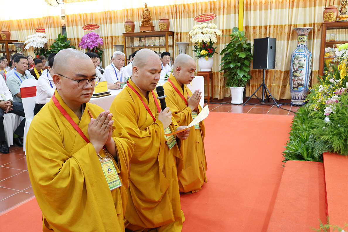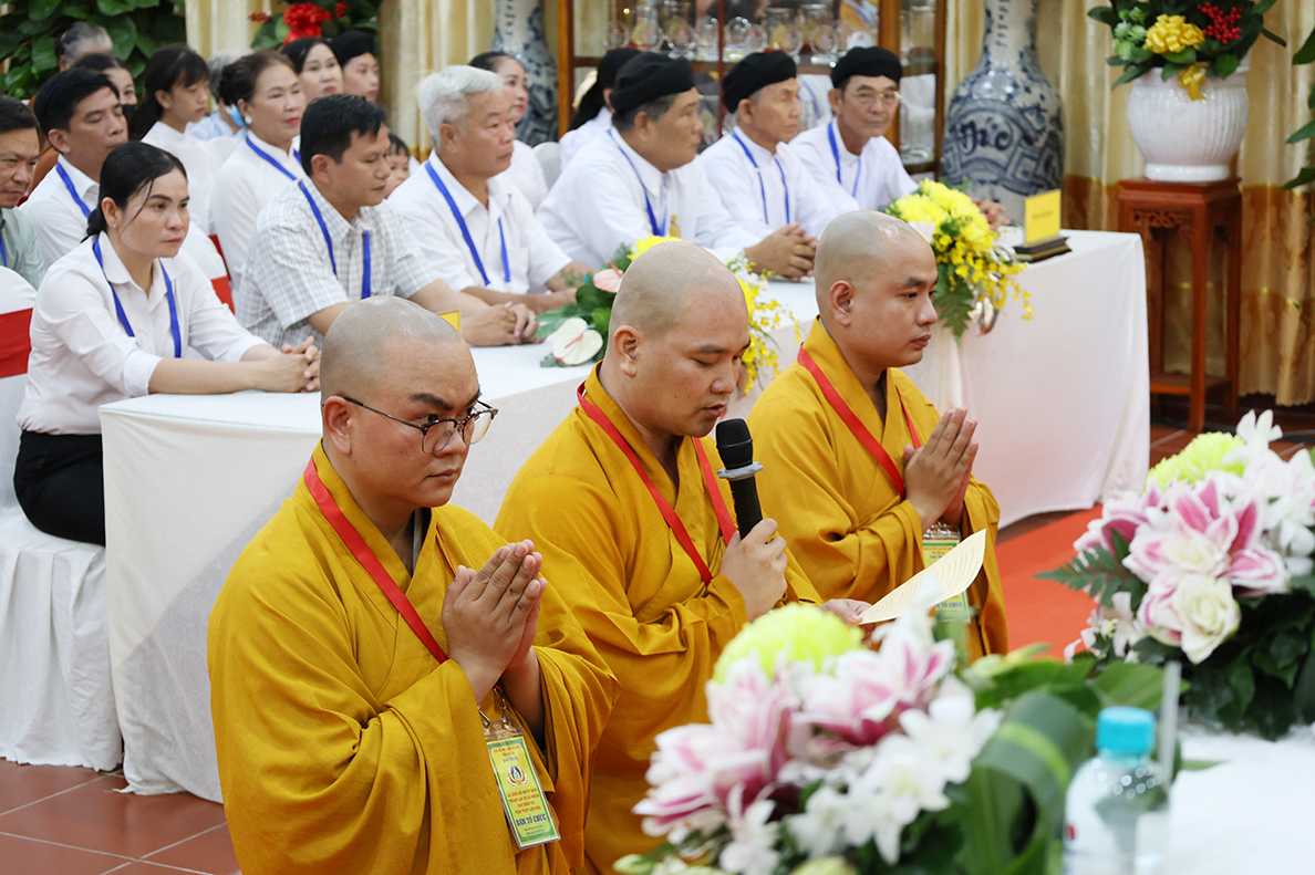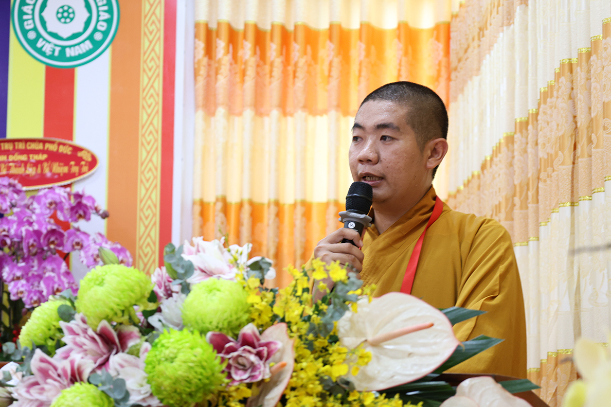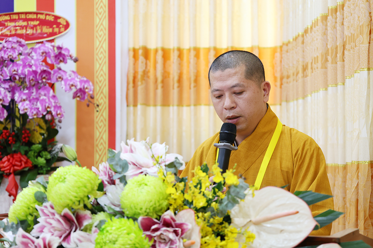 Thay mặt Ban Quản trị Tịnh thất Liên Hoa, Đại đức Thích Đức Thuận – tân trụ trì, trưởng ban Quản trị Tịnh thất Liên Hoa dâng lời phát nguyện nhận nhiệm vụ. Đại đức bày tỏ lòng tri ân sâu sắc đến Hòa thượng Trưởng BTS GHPGVN tỉnh Long An, Chư tôn đức BTS GHPGVN tỉnh Long An, huyện Đức Huệ cũ và các cấp lãnh đạo chính quyền đã tạo điều kiện để Tịnh thất Liên Hoa được chính thức trở thành cơ sở trực thuộc Phật giáo tỉnh nhà, với tinh thần “Tổ đức nan thù” Đại đức đã cung thỉnh Thượng tọa Thích Nhuận Lễ – Bổn sư thế độ của Đại đức vào ngôi vị chứng minh BQT tịnh thất Liên Hoa, Thượng tọa Thích Tâm Hướng – Ân sư của Đại đức vào ngôi vị Viện chủ Tịnh thất Liên Hoa để nương tâm hạnh của Qúy Ngài trên bước đường thừa hành Phật sự.