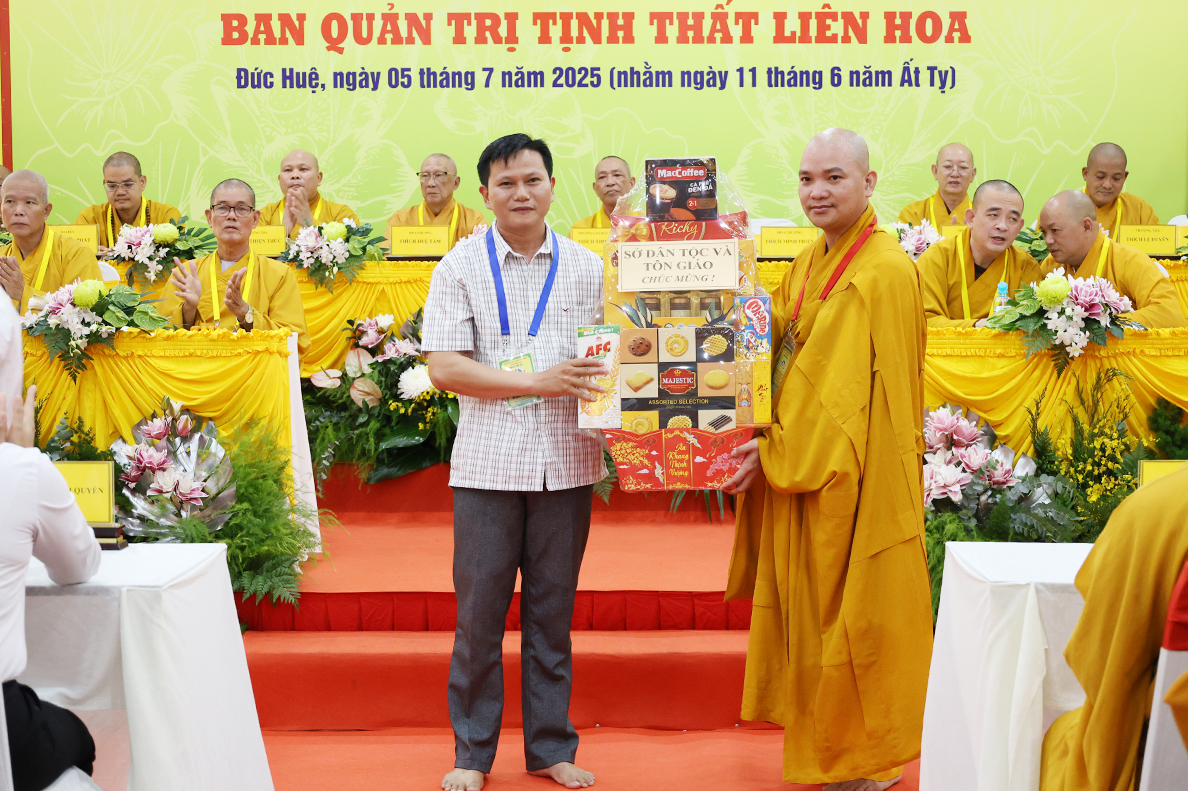 Buổi lễ đón nhận nhiều lãng hoa, khánh vàng và quà chúc mừng từ: Hòa thượng Thích Thiện Huệ, Hòa thượng Thích Minh Thiện, BTS GHPGVN tỉnh Tây Ninh, Ban Dân vận – Ban Tôn giáo tỉnh Tây Ninh; Ban Đại diện liên các xã; Chính quyền xã Đức Huệ;….. và nhiều phần quà khác.