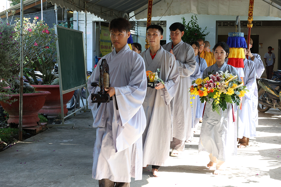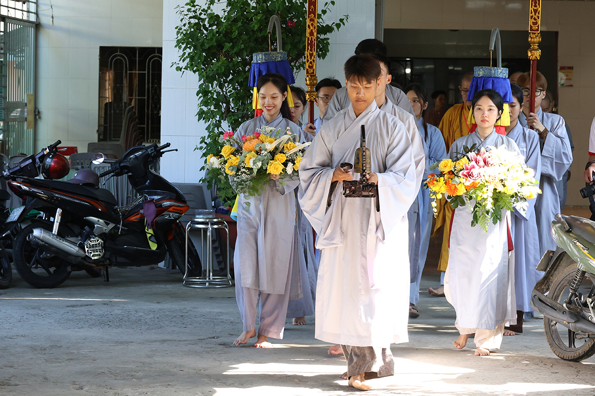 Buổi lễ được cung nghinh sự quang lâm chứng minh của TT. Thích Lệ Tấn – Trụ trì Chùa Giác Hoa; Đại điện BTC khóa tu có: Đại đức Thích Huệ Nghiêm, Đại đức Thích Bổn Trường, Sư Cô Thích Nữ Liên Hiền – Uỷ viên Ban HDPT Trung ương GHPGVN, Sư cô Thích Nữ Huệ Trí, cùng Chư Tôn đức Tăng Ni.