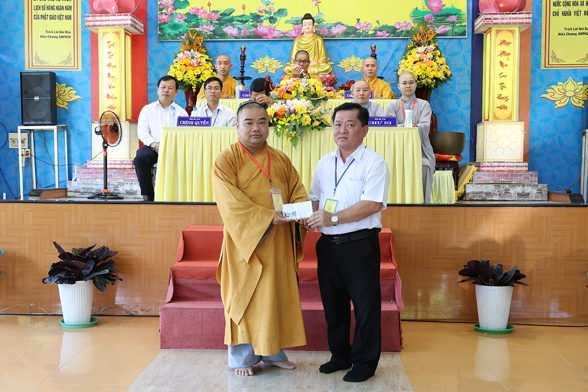 Đại diện chính quyền xã Tân Thạnh, ông Lê Minh Tuấn – Phó Chủ tịch UBND xã có lời phát biểu tại biểu lễ, ông hoan hỷ gửi lời chúc mừng sức khỏe, vui mừng với hoạt động Phật sự tại địa phương sau khi sáp nhập xã mới, mong muốn các bạn trẻ sau khi tham gia khóa tu, trở về gia đình sẽ trở thành có trách nhiệm tích cực, có ích với xã hội, đất nước, gia đình, xã hội, cố gắng học tập, nổ lực xây dựng tổ quốc trong tương lai